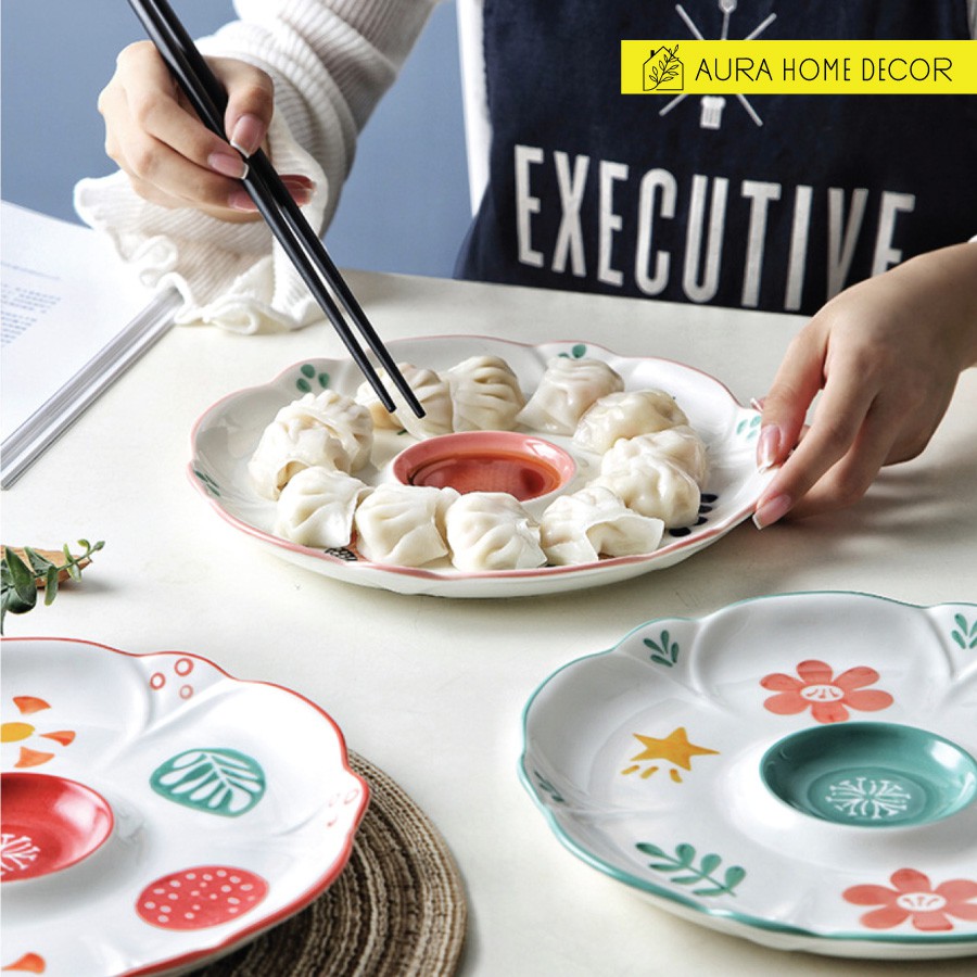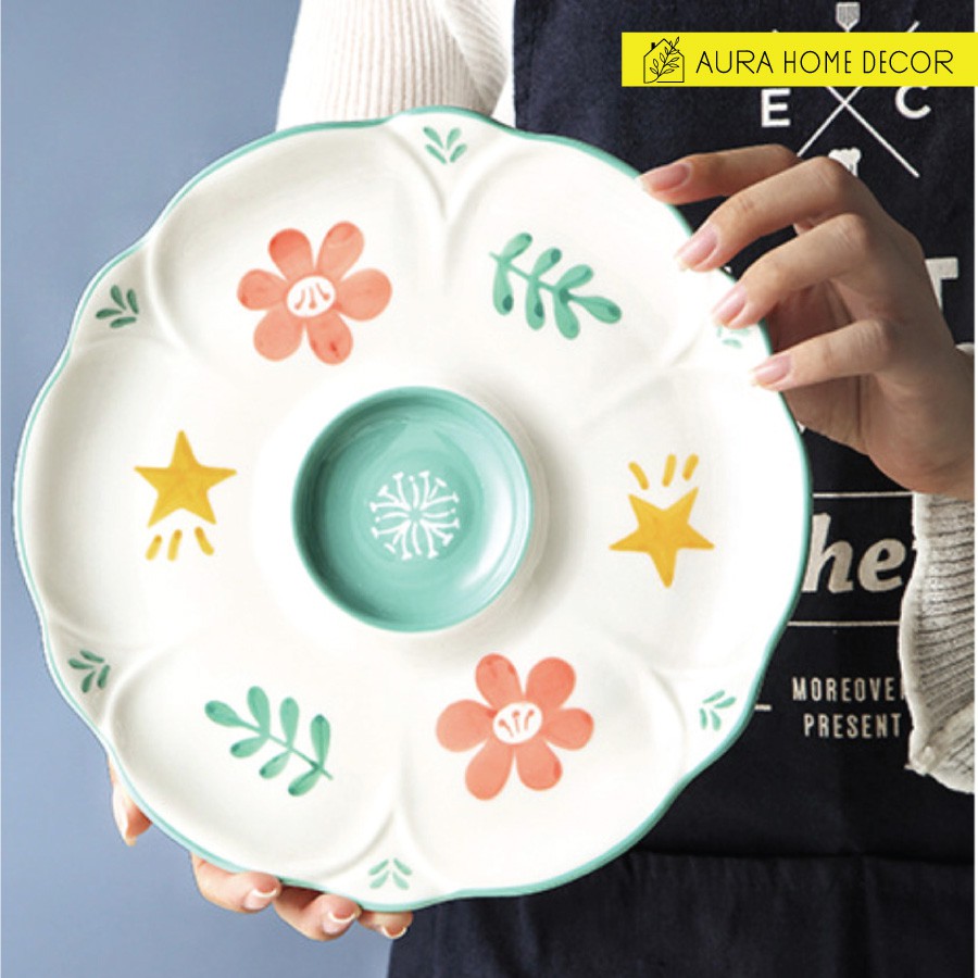 [SẴN HÀNG] Đĩa chia ô hình hoa cực xinh có ngăn đựng tương ớt, tương cà, nước mắm