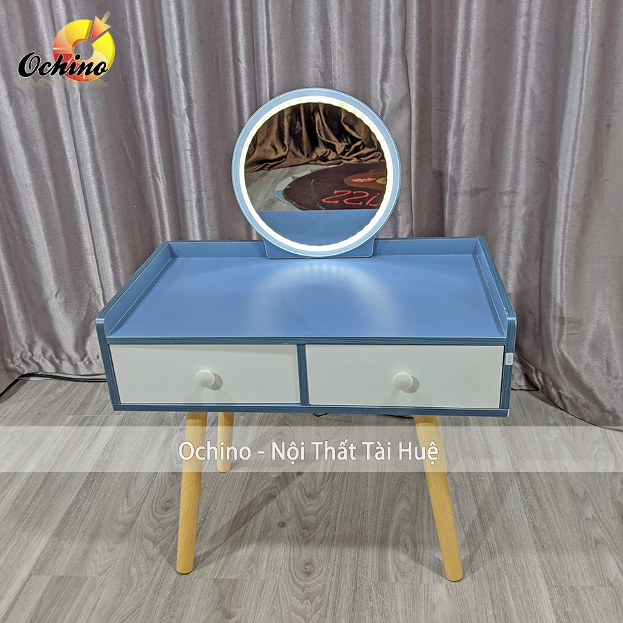 Loại 2: có 3 màu xanh trắng và hồng, có gương led cảm ứng nữa, kích thước là ngang 60 cm, chiều sâu là 34 cm, cao lên đén mặt bàn là 45cm, Hộp bàn cao 1m, gương đk 30 cm nhé, diểu chỉnh được 3 độ sáng khách nhau, có 2 ngăn kéo để đồ khái tiện lợi nhé,