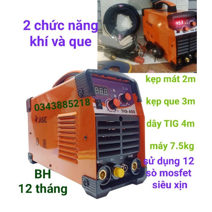 -1 chiếc máy hàn 2 chức năng, cả hàn Tig, cả hàn Que Thông tin cơ bản về JASIC TIG 450 Về cơ bản, chiếc máy này chức năng chính để hàn TIG( hàn kim) nhưng được thiết kế thêm phần hàn que, giúp hỗ trợ tốt nhất cho khách hàng JASIC TIG 450 có dòng hàn 450A, hàn tig kim 1.6 - 2.4