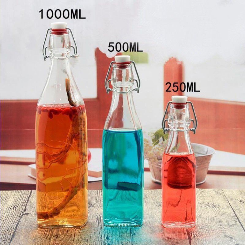 Chai thủy tinh vuông nắp cài (250ml/500ml/1000ml)