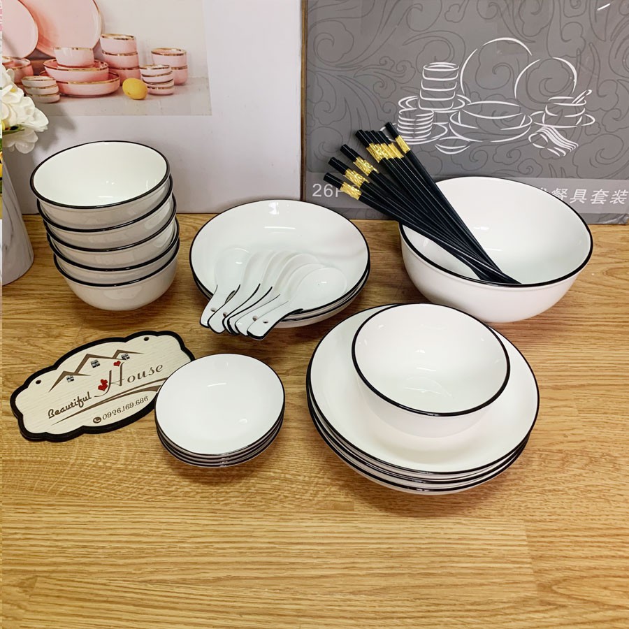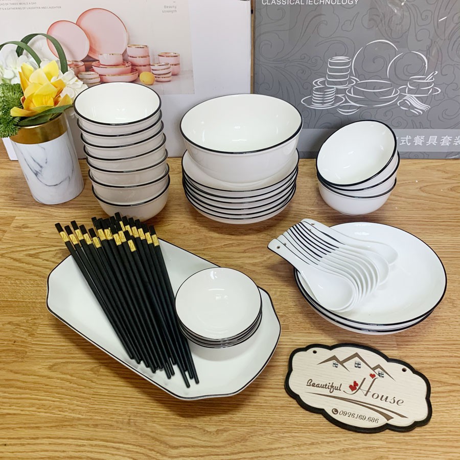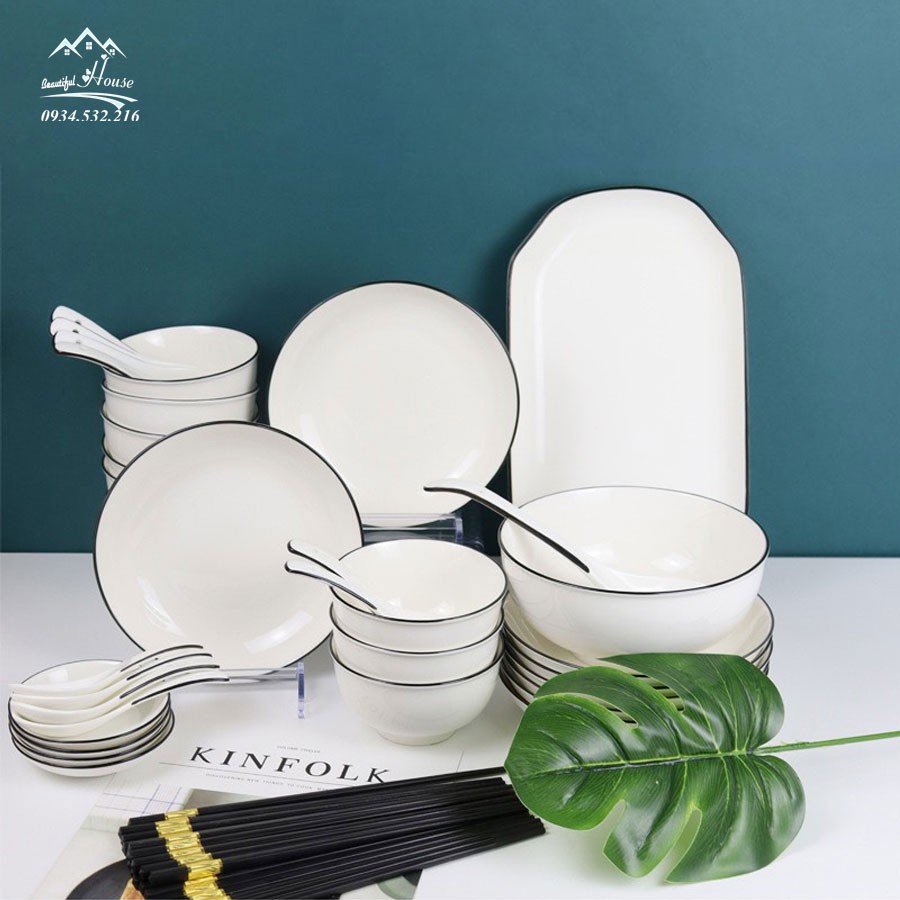 Bộ Bát Đĩa Cao Cấp Sứ Trắng Bo Viền - Phong Cách Bắc Âu 28-45 MónSố lượng các set Chuẩn Hình :