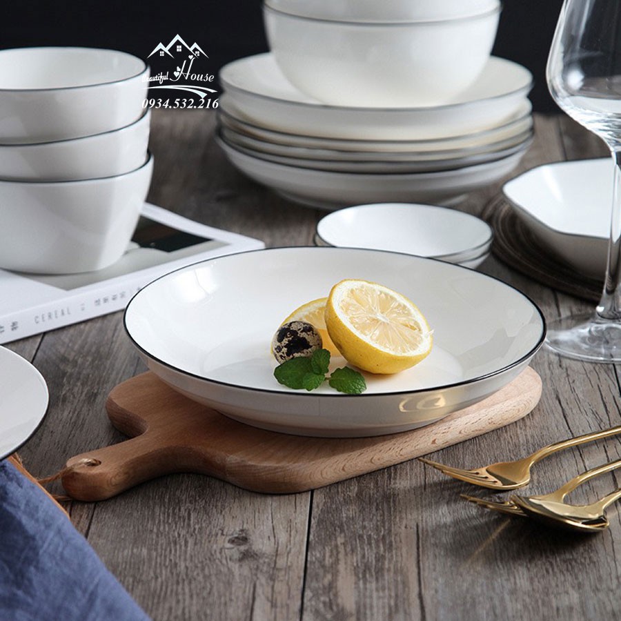 Nhà cửa & Đời sống > Bộ đồ bàn ăn > Dĩa || Bộ Bát Đĩa Cao Cấp Sứ Trắng Bo Viền - Phong Cách Bắc Âu 28-45 Món - BA09Còn hàng