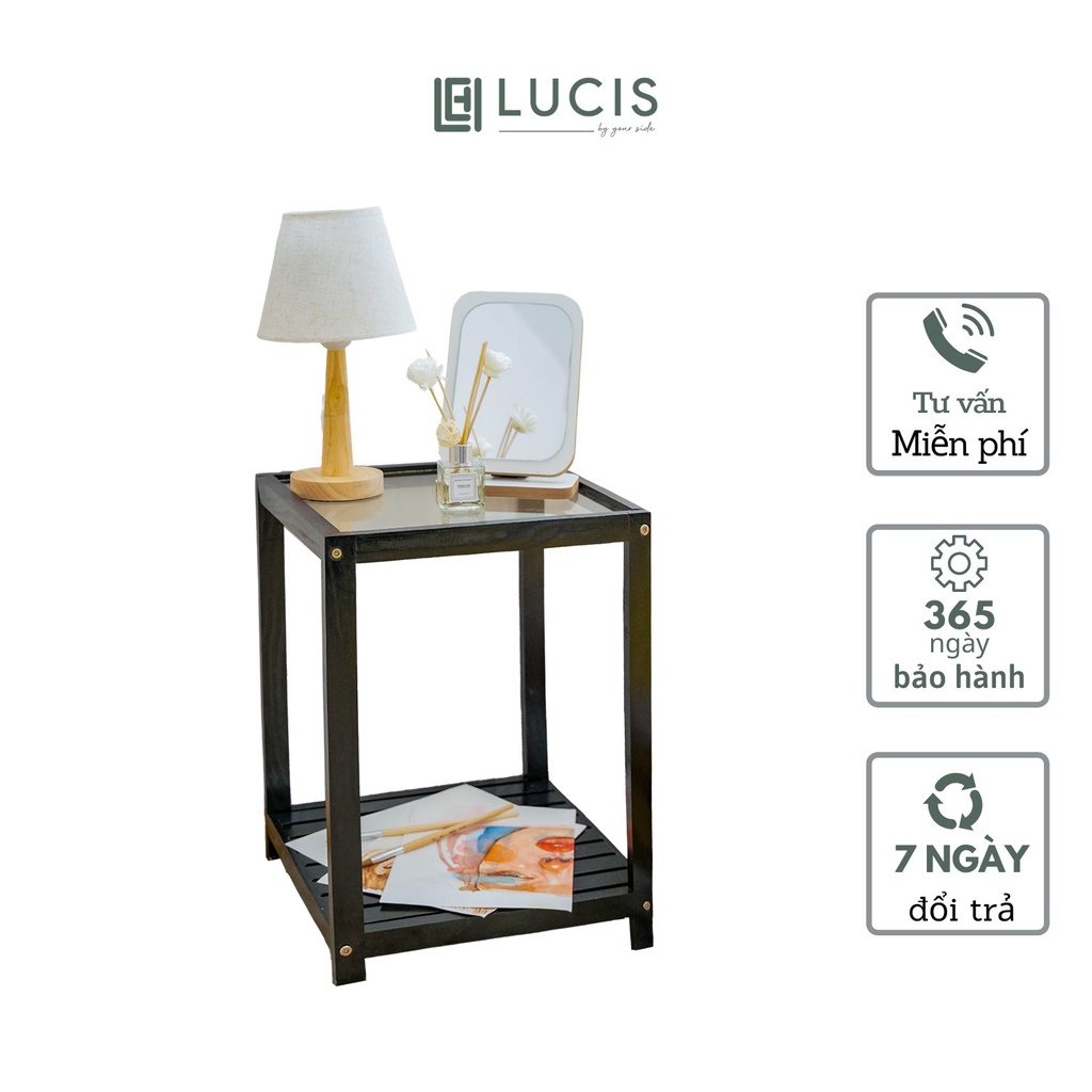 Giới thiệu Kệ đầu giường 2 tầng mặt kính LUCIS màu đen để đồ phòng ngủ