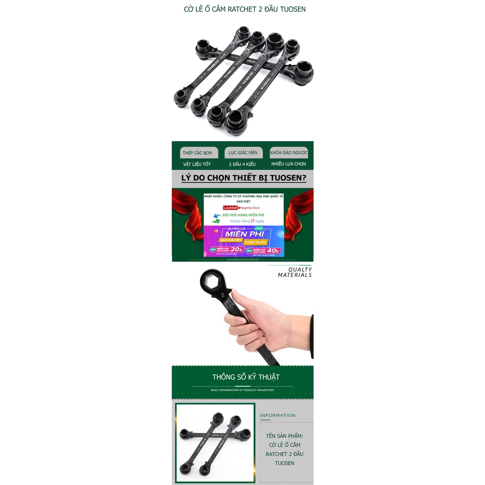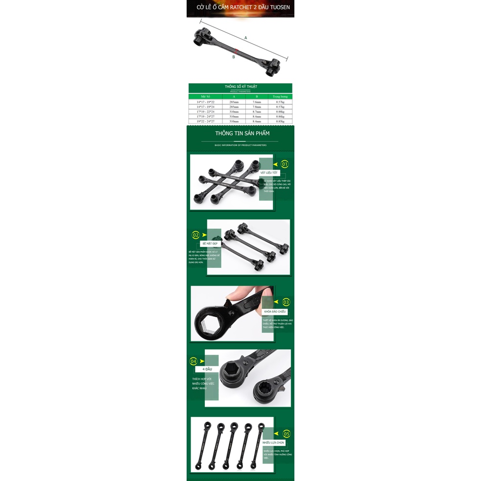 Giới thiệu Cờ lê ổ cắm Ratchet 2 đầu TUOSEN, cờ lê bánh cóc - với 5 lựa chọn từ cỡ 14mm tới 27mm