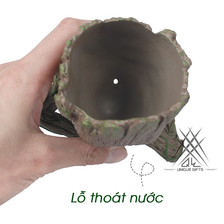 - Chậu cây Groot có lỗ thoát nước nên có tưới nhiều nước cũng không sao đâu các bạn nhé