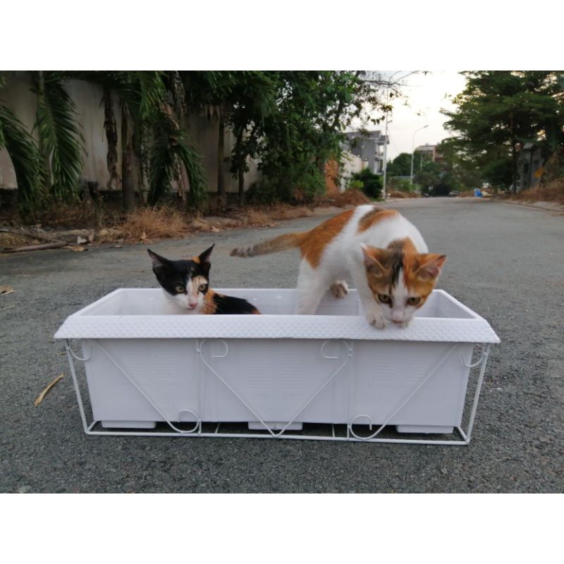 Bộ sản phẩm bao gồm khung sắt + chậu chữ nhật dài kích thước 60x23x19- Sản phẩm thích hợp với các loại cây rũ như cúc nữ hoàng, trâm ổi tím, cúc tần ấn độ....