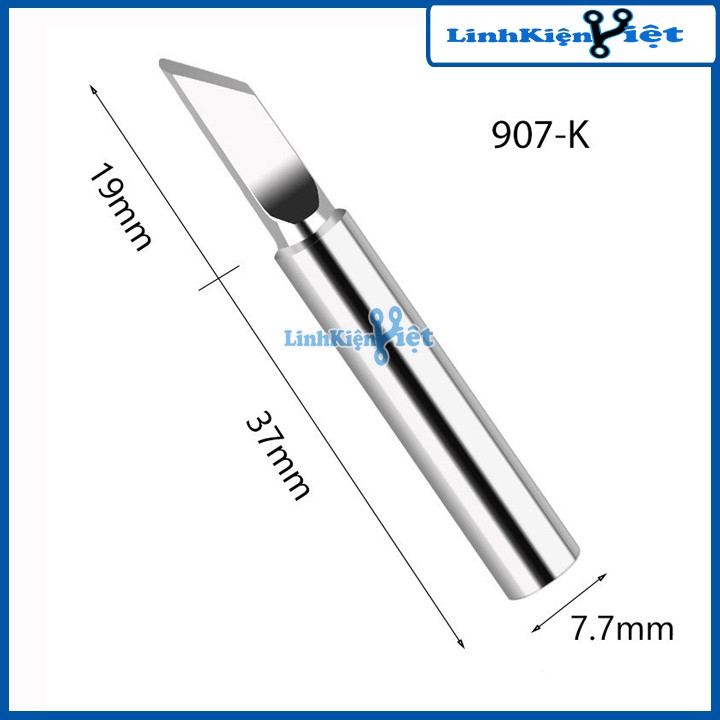 - Đầu Mũi Hàn No.907-T-K là loại mũi hàn phổ biến trên thị trường,với đầu mũi hàn dạng dao,khả năng gia nhiệt lớn giúp tập trung nhiệt năng.Thích hợp với nhiều loại mối hàn khác nhau đặc biệt là vuốt chip cho các IC.