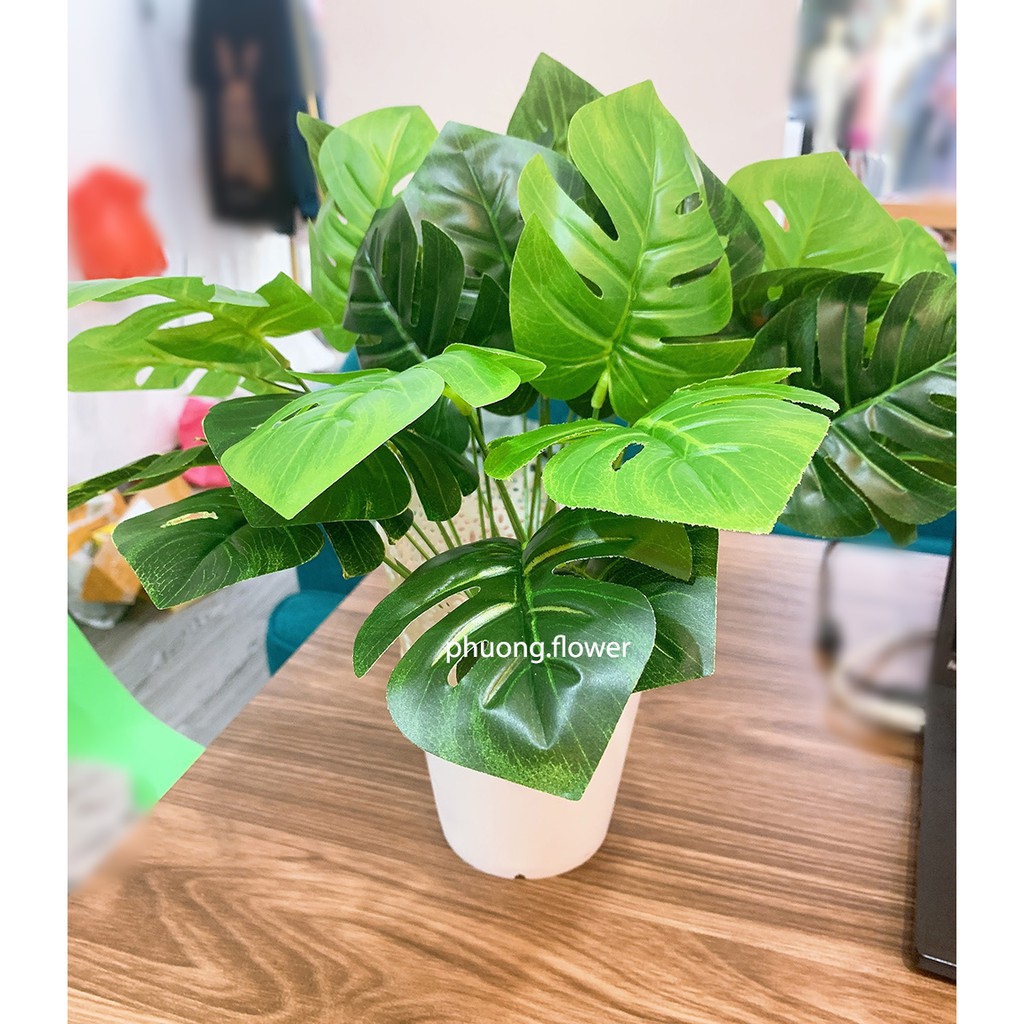 💗Cây lá rùa giả decor 2 size 58cm 18 nhánh và 33cm 9 nhánh bằng nhựa dùng trang trí decor rất đẹp💗Lá được làm từ nhựa siêu bền chắc chắn, gân lá bằng nhựa đúc liền với lá rất chắc chắn