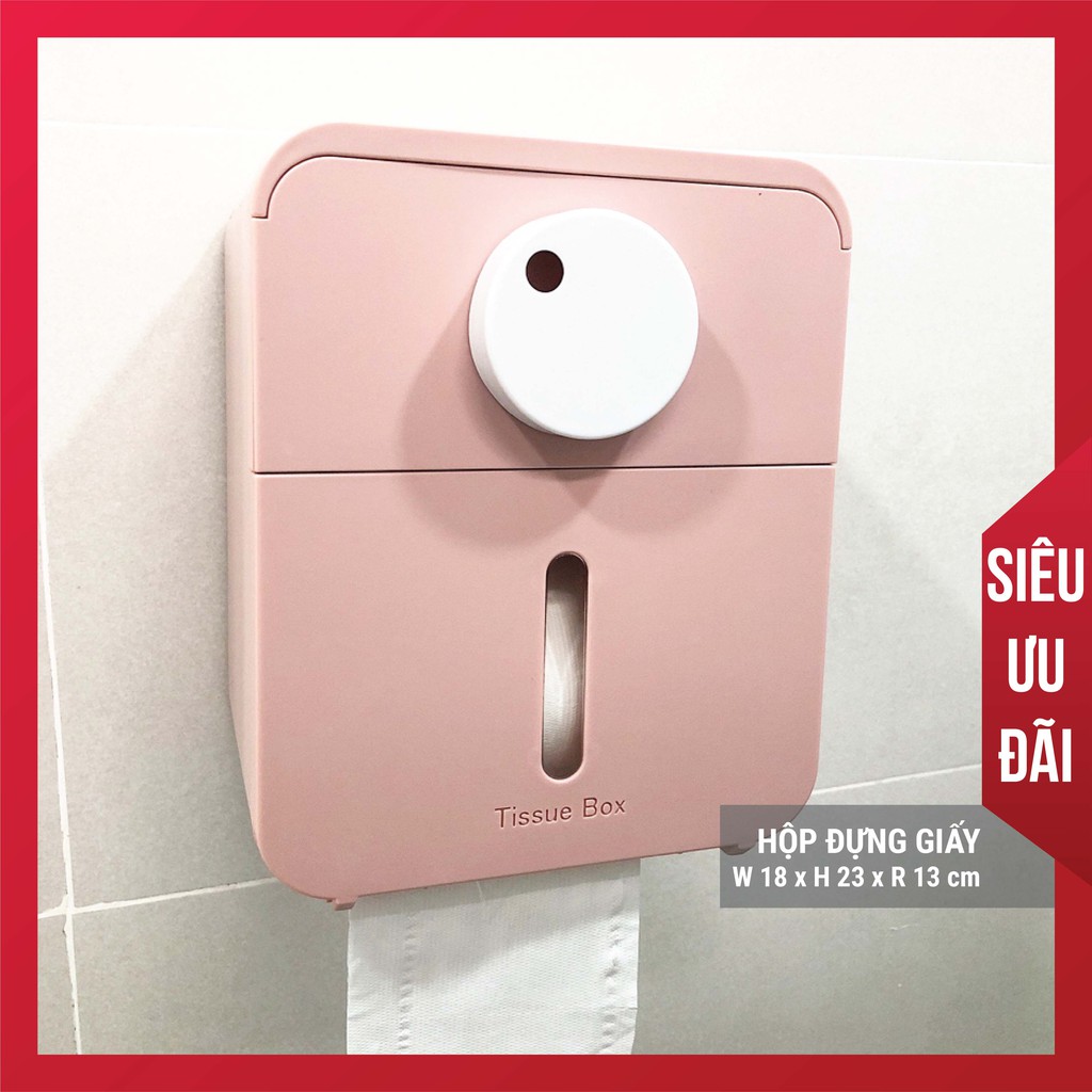 • Hộp đựng khăn giấy bao gồm 1 ngăn tủ để đựng đồ vật như sữa rửa mặt,… và 1 ngăn để đựng khăn giấy