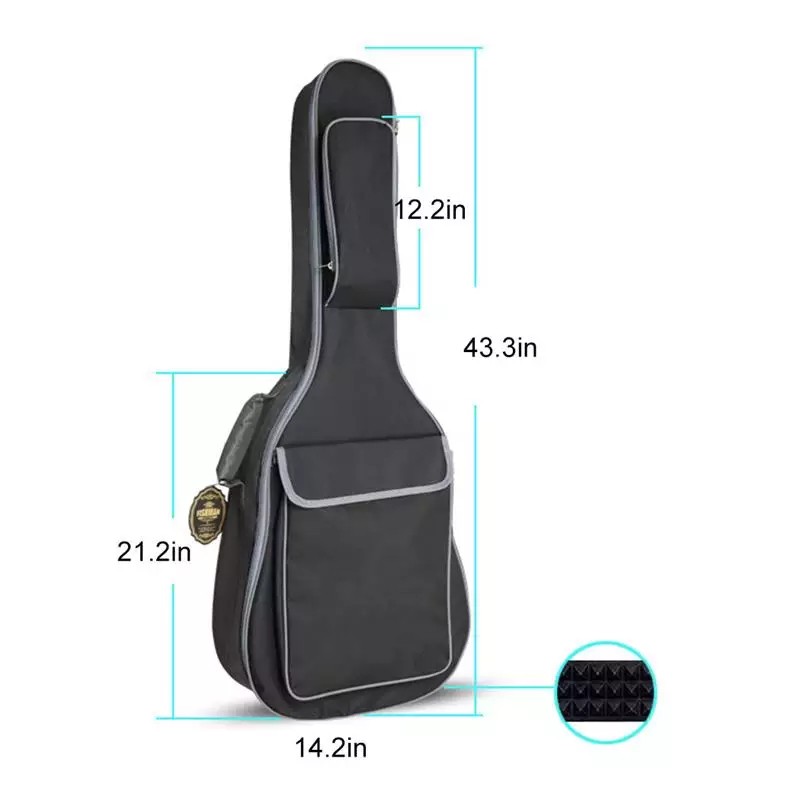 Bao đựng đàn guitar thùng 39/40/41 inch vải dù cao cấp loại dầy 10mm-Chất liệu vải dù cao cấp, có bề mặt mịn, chống thấm nước nhẹ, chống hút ẩm,