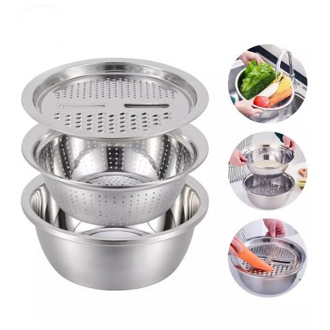 Bộ 3 món inox bào rau củ hoa quả - Vỉ bào rau củ - HÔP ĐỎ