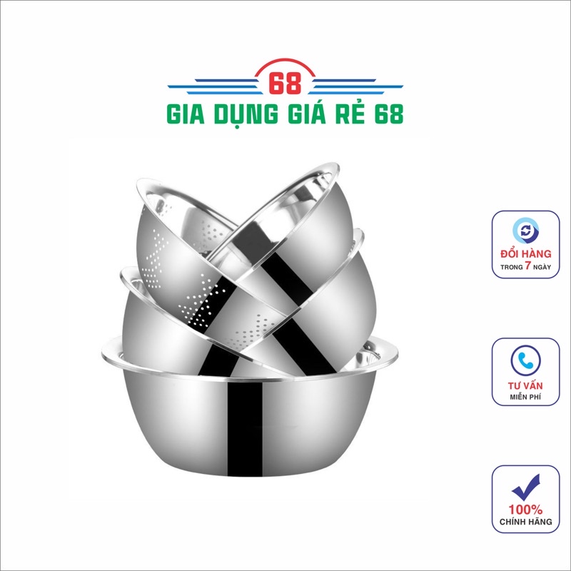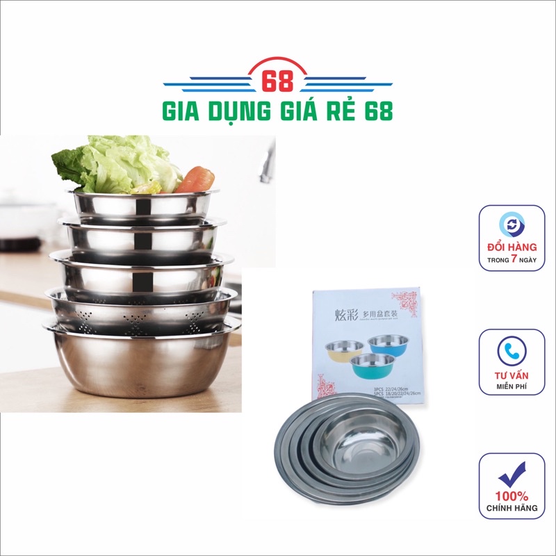 Nhà cửa & Đời sống > Dụng cụ chăm sóc nhà cửa > Chậu, xô & gáo nước || Bộ Thau Rổ Inox 5 món Cao Cấp Cho Nhà BếpCòn hàng