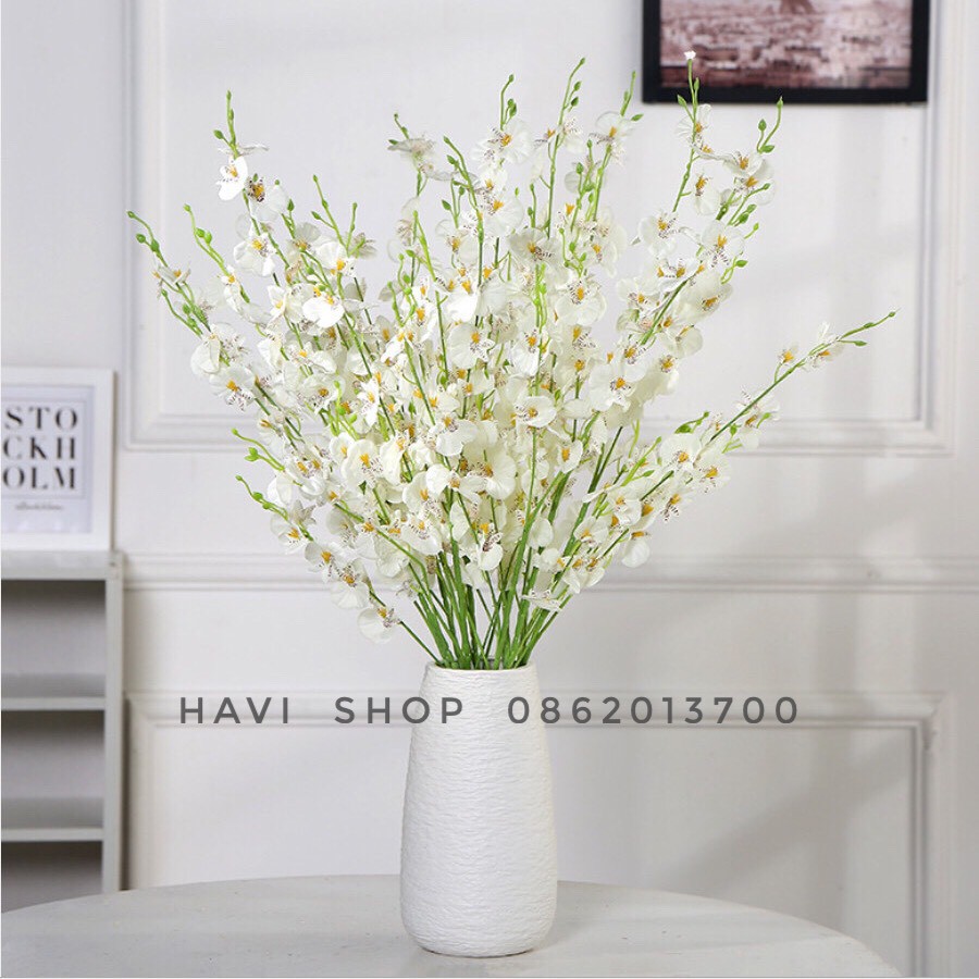 Nhà cửa & Đời sống > Trang trí nhà cửa > Hoa trang trí || Hoa Giả - Hoa Lan Vũ Nữ Havi 1 mét, cành 8 nhánh dercor quý phái, sang trọngCòn hàng
