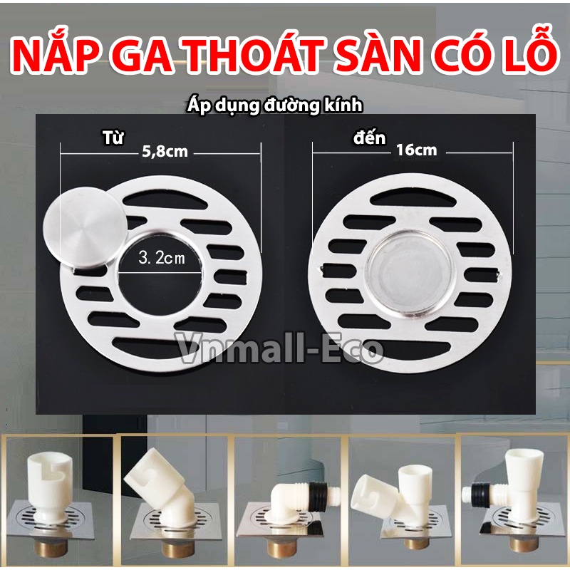 [Mã LIFEHLSALE2 giảm 10% đơn 0Đ] [INOX] Nắp ga thoát sàn có lỗ cắm cút chia thoát nước