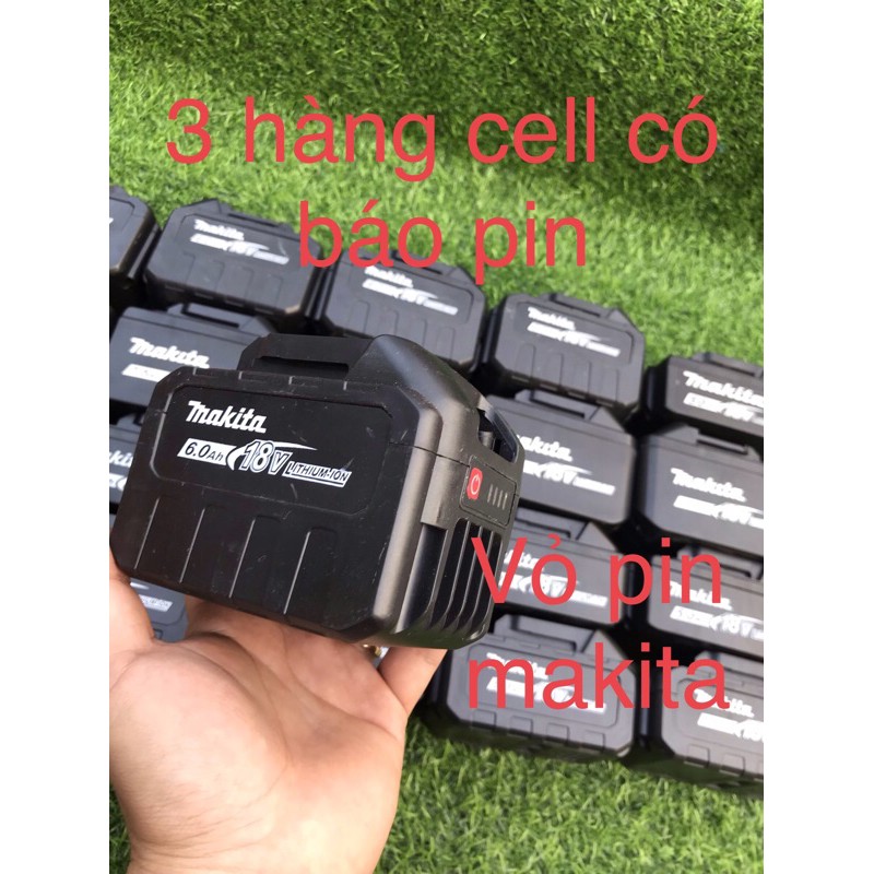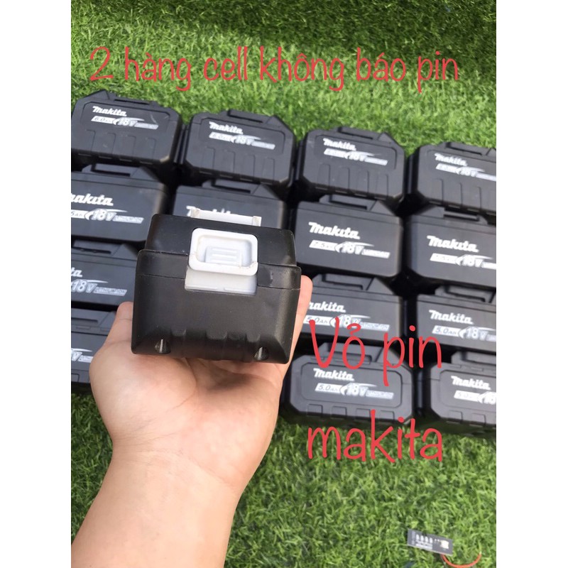 Vỏ pin makita 5s3p 3 hàng cell = 15cell pin có thể dùng thay thế các loại máy công cụ chạy chung chân makita. sản phẩm được làm bằng nhựa abs rất bền và cứng. đầy đủ phụ kiện kèm theo ( 04 ốc vỏ + 02 ốc mạch + lò xo - loại có báo pin thêm mạch báo pin và miếng báo pin) . Khách hàng về chỉ việc đóng pin vào là sử dụng. bên mình có 4 loại để khách hàng dễ dàng lựa chọn1 : Loại 3 hàng không tem( không báo pin )