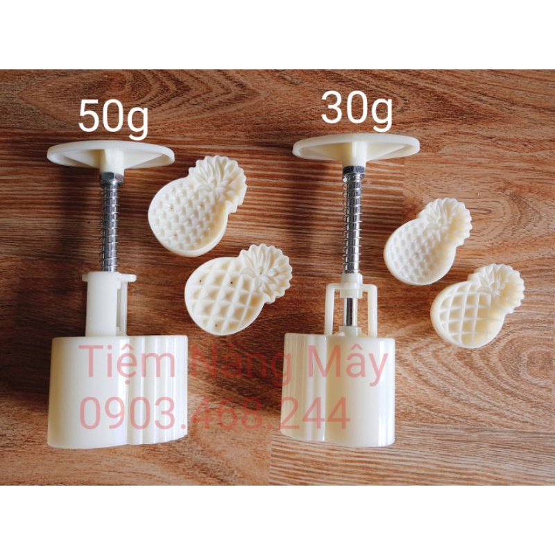 khuôn quả dứa ,khuôn bánh dứa lò xo gồm 4 mặt khuôn và 1 cây nhấn lò xoKhuôn 30g và 50g