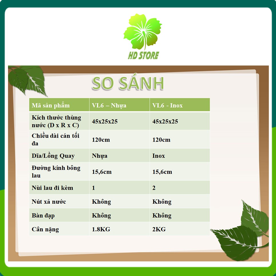 Bộ lau nhà thông minh 360 độ tự vắt Model VL6 Nhựa - cây lau inox bàn xoay nhựa