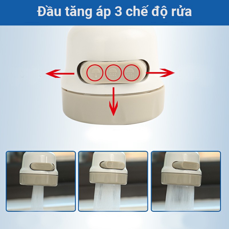Nhà cửa & Đời sống > Dụng cụ & Thiết bị tiện ích > Chậu rửa & vòi nước || Đầu vòi rửa chén bát tăng áp điều chỉnh 3 cấp độ xoay 360 độCòn hàng