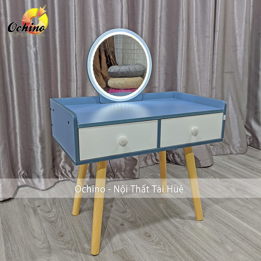 Loại 2: có 3 màu xanh trắng và hồng, có gương led cảm ứng nữa, kích thước là ngang 60 cm, chiều sâu là 34 cm, cao lên đén mặt bàn là 45cm, Hộp bàn cao 1m, gương đk 30 cm nhé, diểu chỉnh được 3 độ sáng khách nhau, có 2 ngăn kéo để đồ khái tiện lợi nhé,