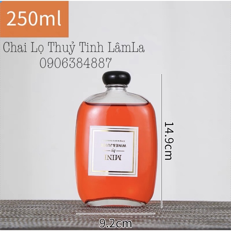 Giới thiệu Chai Thuỷ Tinh Dẹp Bầu Nắp Nhựa Đen 100ml 250ml 350ml 500ml | Chai Trong Suốt - Chai Nhám Mờ