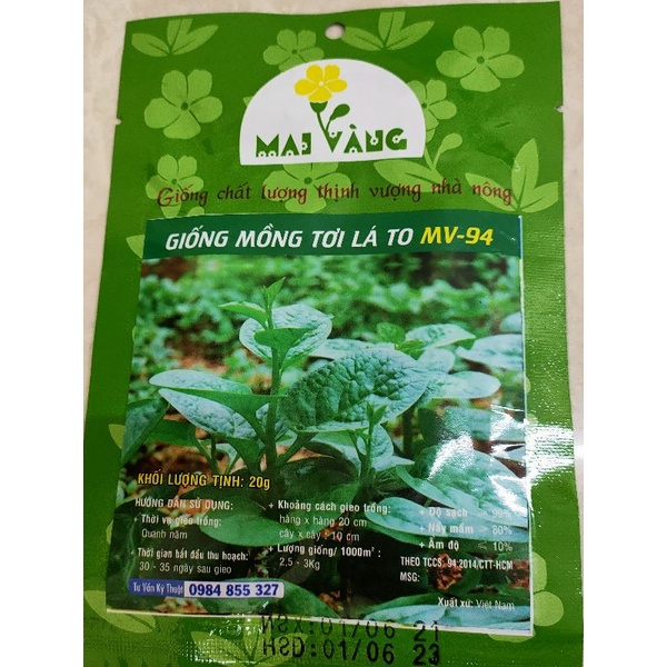 Giới thiệu [Gói 20gr] Hạt giống Rau Mồng tơi lá lớn