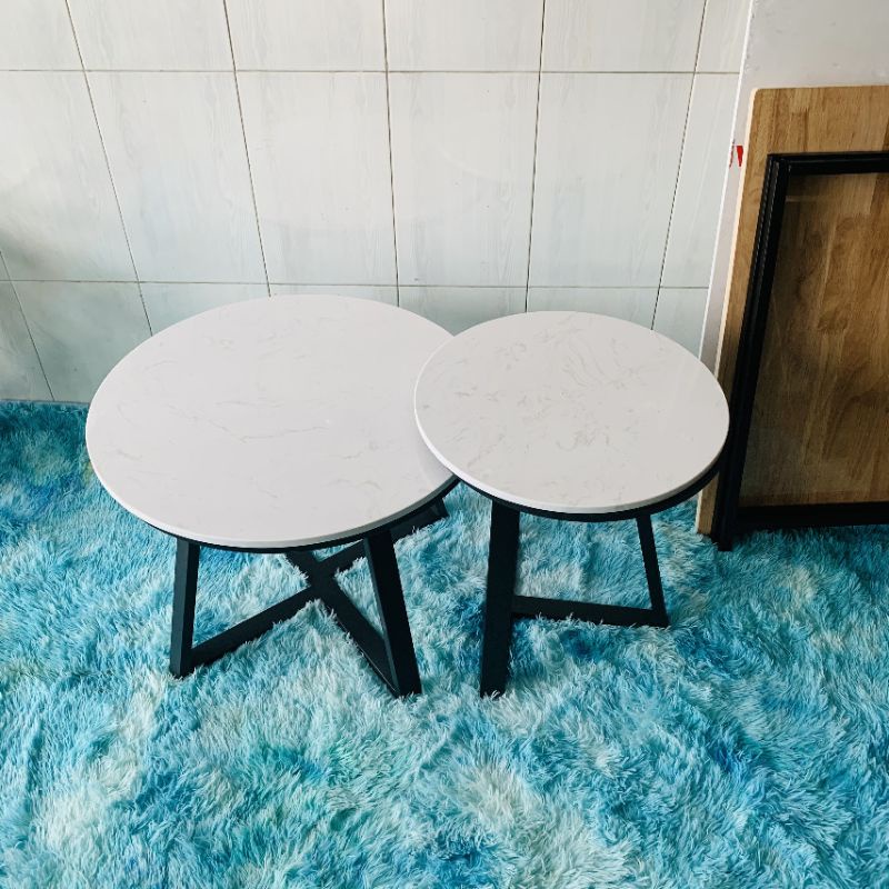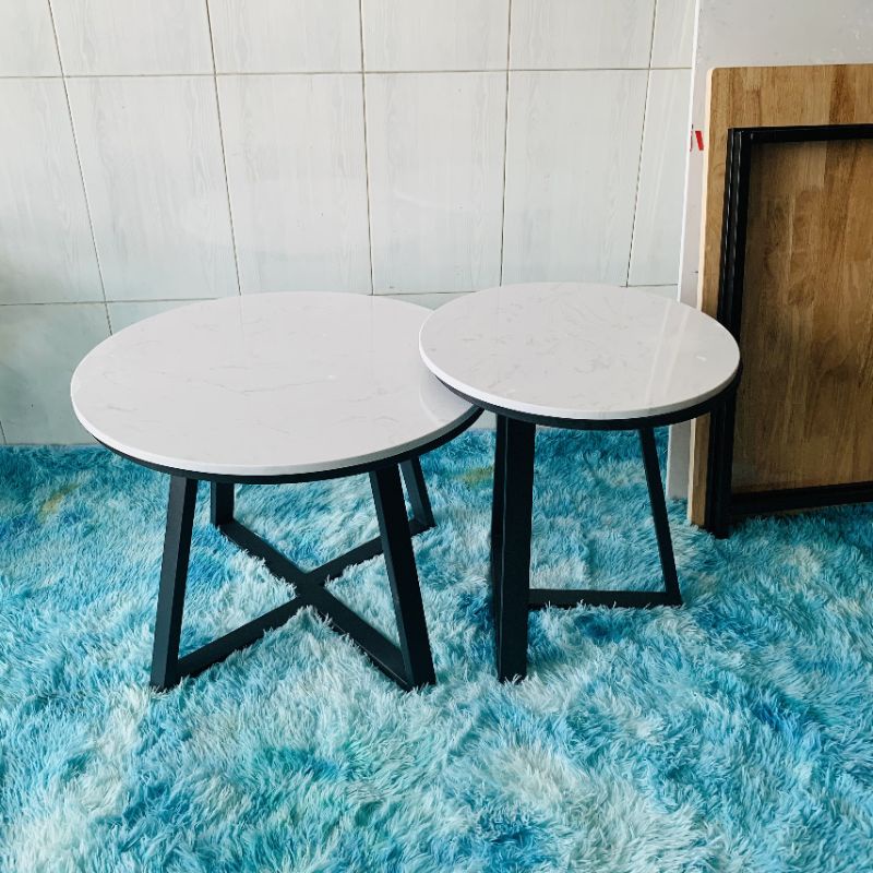 Nhà cửa & Đời sống > Nội thất > Bàn || Bàn đôi tròn mẫu chân 2-4 khung sắt màu đen mặt bàn đá trắng vân mây sịn sòCòn hàng
