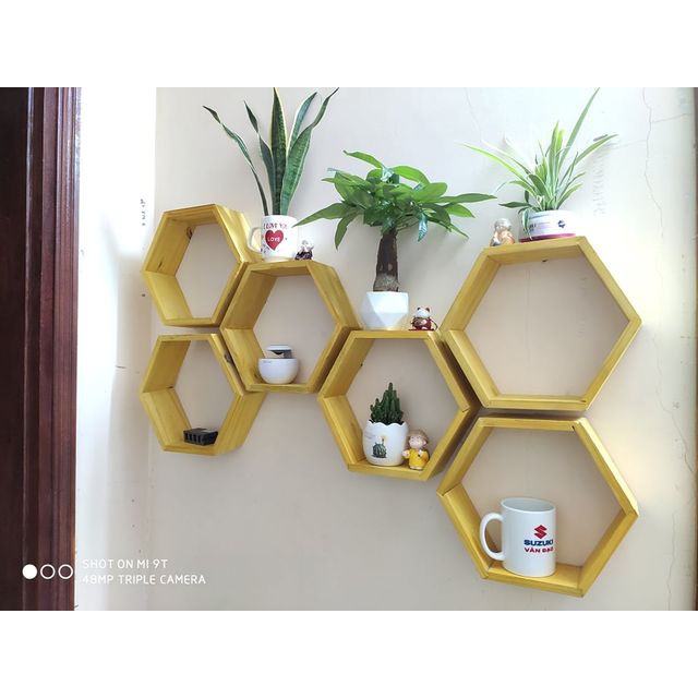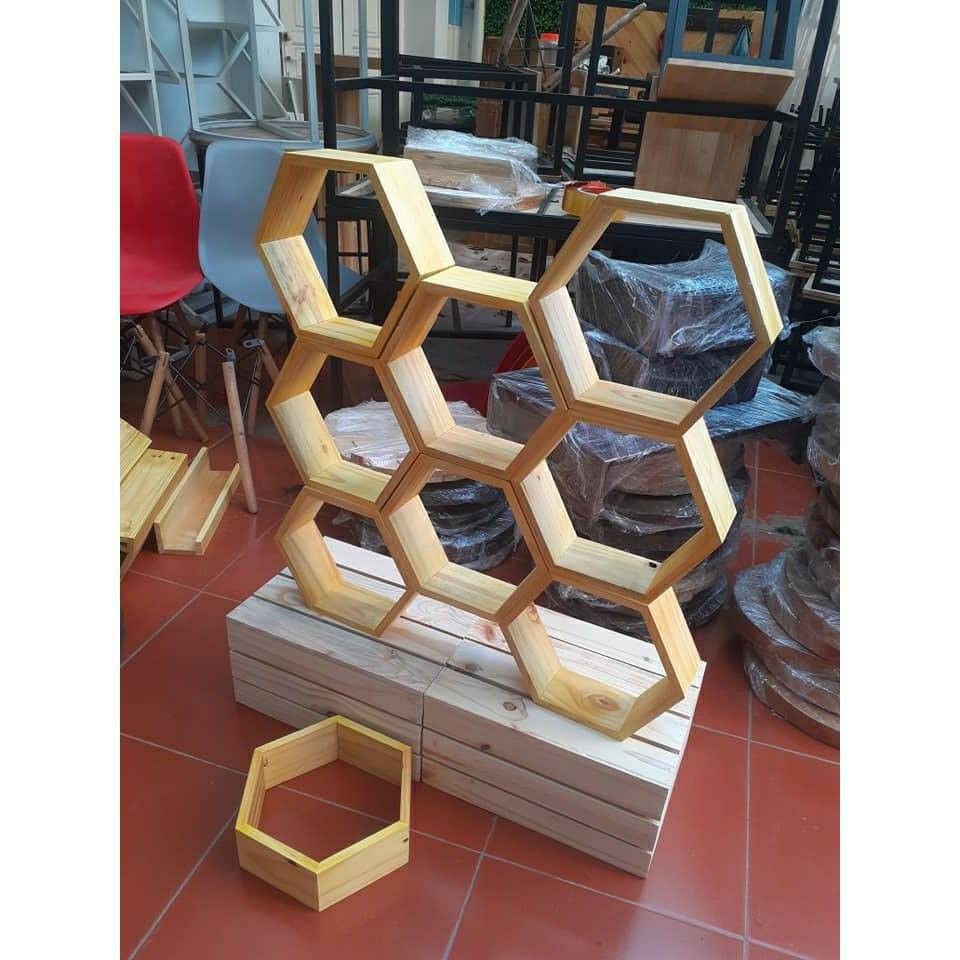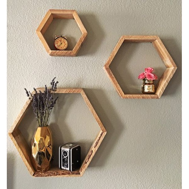 Nhà cửa & Đời sống > Nội thất > Kệ & Giá || Tổng Kệ lục giác treo tường decor | Kệ 3 ô tổ ong ô lục giác Gỗ Thông HPKTT 19Còn hàng