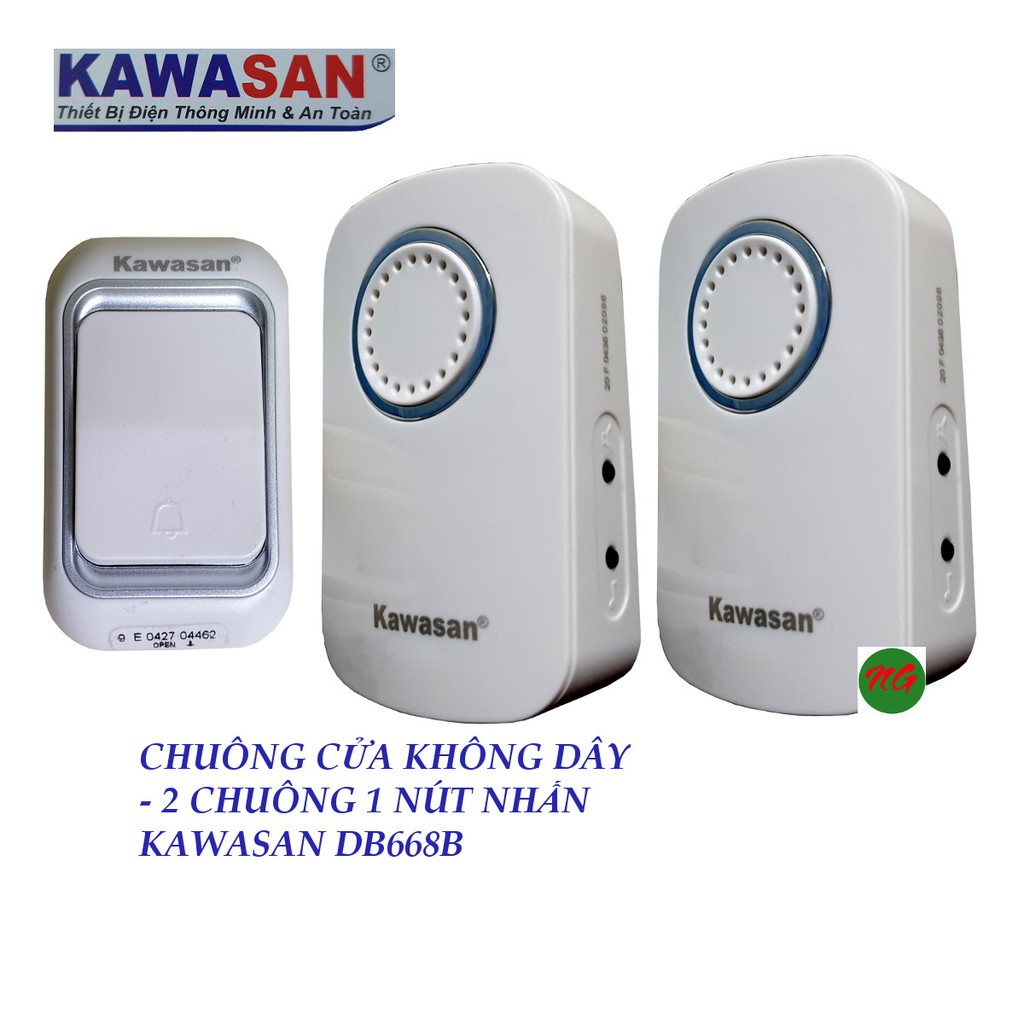 Bộ chuông cửa không dây - 2 ĐẦU CHUÔNG có nút nhấn chống nước Kawasan DB668B