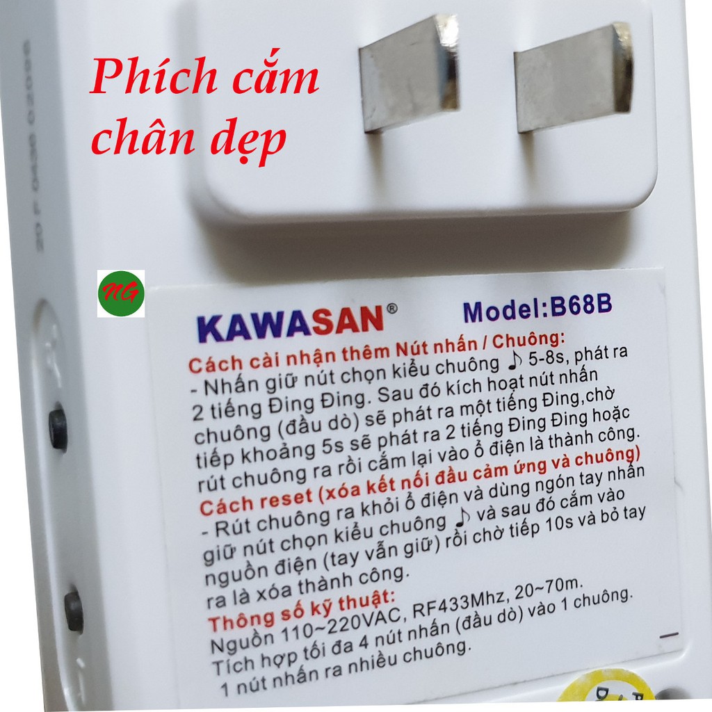- Tần số phát sóng giữa chuông và nút nhấn là tần số: 433Mhz