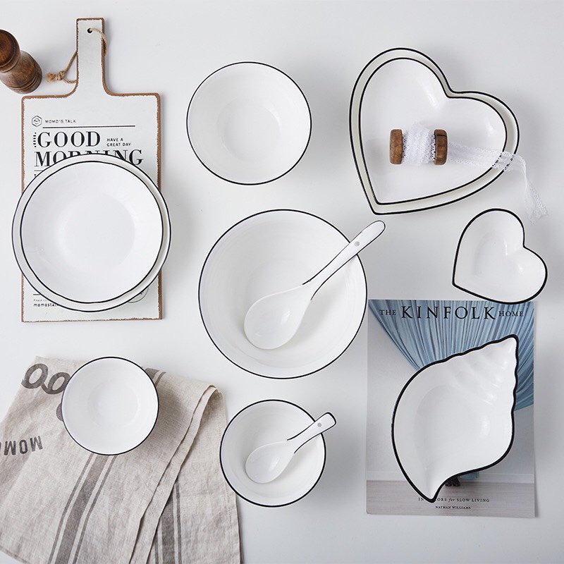 💥ĐĨA SỨ TỐI GIẢN CAO CẤP, ĐĨA SỨ TRẮNG VIỀN ĐEN 💥🔴 Thông tin sản phẩm:
