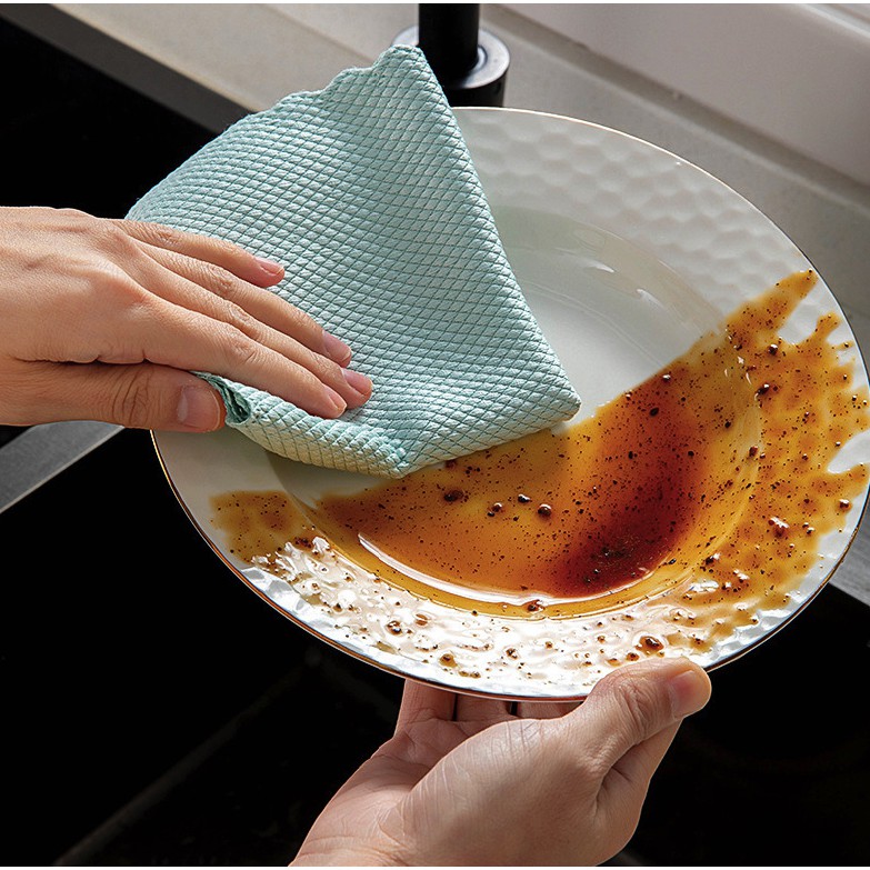 ➖ ĐẶC BIỆT : Do chất liệu vải vảy cá không xù, rụng lông nên rất tiện lợi làm sạch bát đũa/ bếp/ gương kính/ vật dụng cá nhân