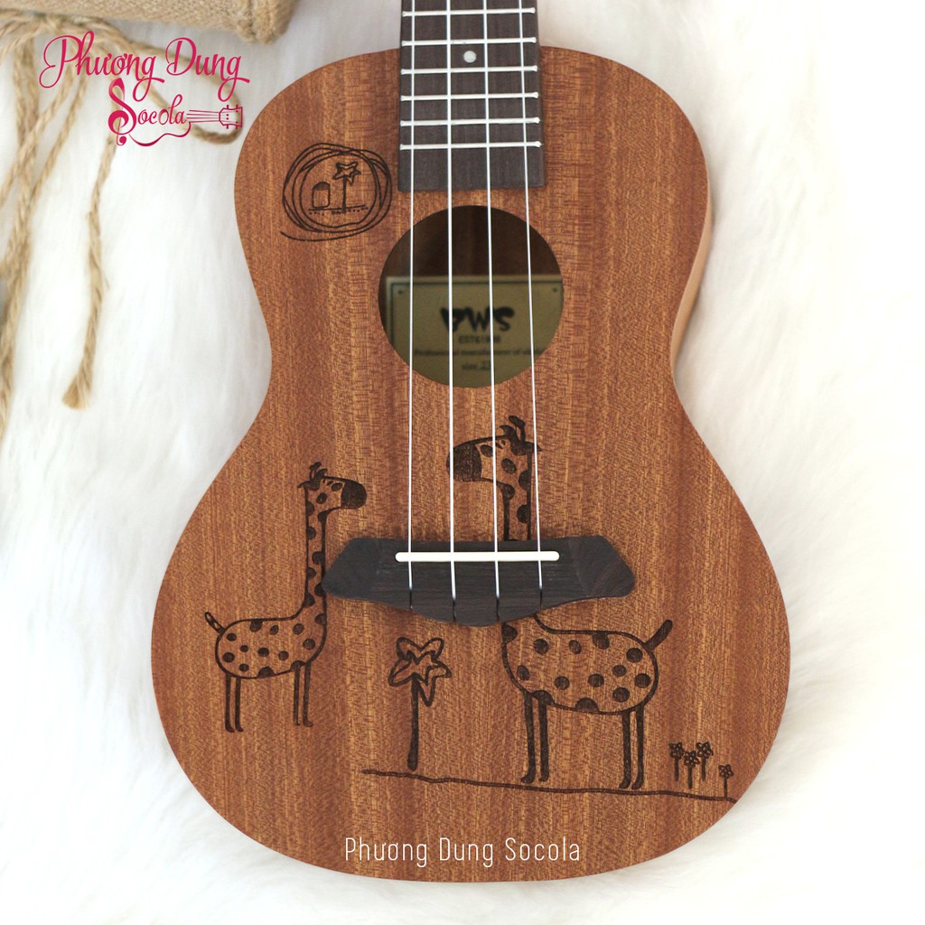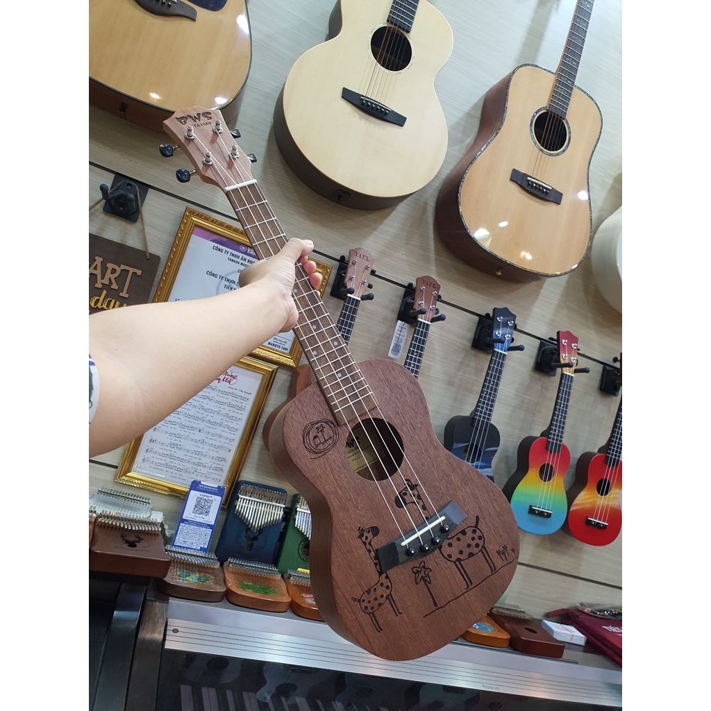 Cấu hình full gỗ Mahogany từ cần đàn đến bodySize Concert 23inch, chiều dài 58cm