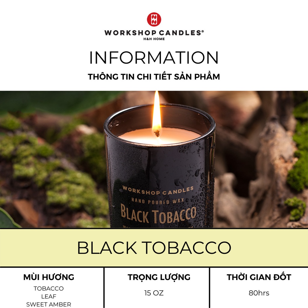 Giới thiệu Nến thơm Black Tobacco Workshop Candles H&H Home 15oz hương gỗ cao cấp