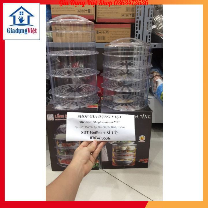 [Nhựa Việt Nhật] Lồng bàn đa tầng trong suốt giữ nhiệt Việt Nhật+ Size CAO: Đường kính 24 cm x chiều cao 40cm đựng được bát đĩa cao hơn so với phiên bản cũ