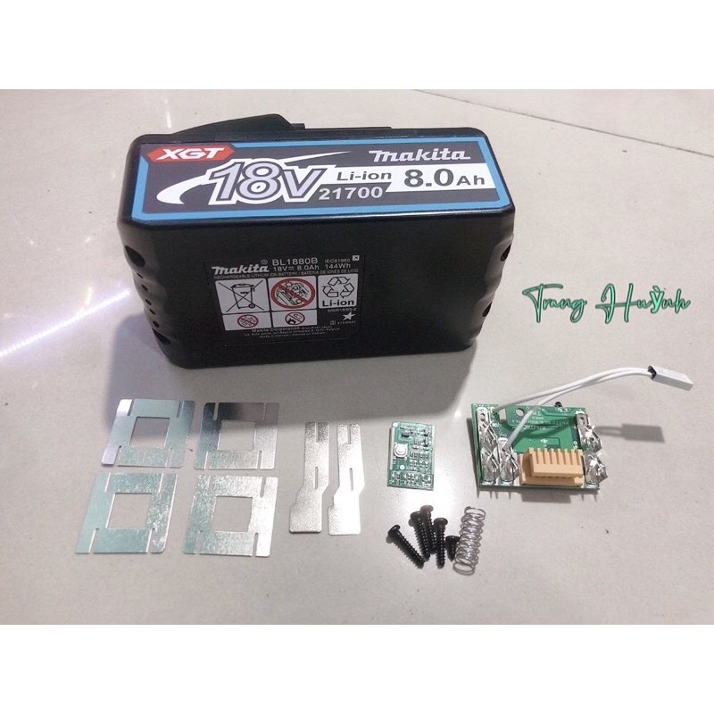 - Vỏ, mạch sạc pin Makita 18V 8Ah dùng đóng pin 21700 pin Li-ion, mạch nhận sạc zin.