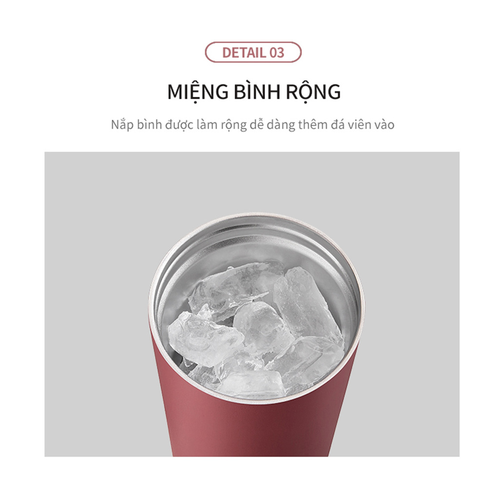 Miệng bình rộng đủ để vệ sinh bên trong và thêm đá viên.
