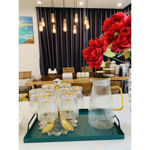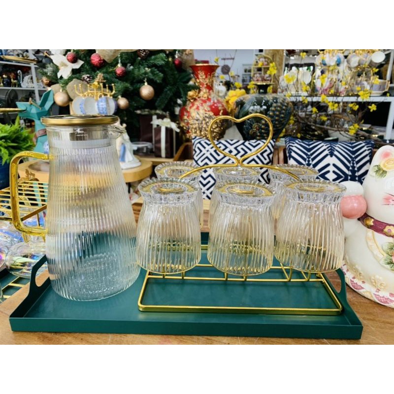 Bộ bình 6 cốc thủy tinh chịu nhiệt, Bộ bình thủy tinh đựng nước