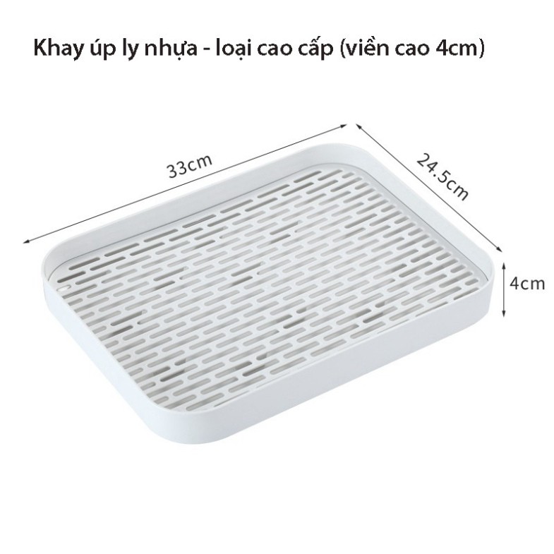 Shop có 2 loại khay nhựa úp ly côc:☑️ Loại thường: Kích thước dài 31 * rộng 17.5 * cao 2cm/Loại này viền khay thấp 2cm, gọn gàng tiện lợi