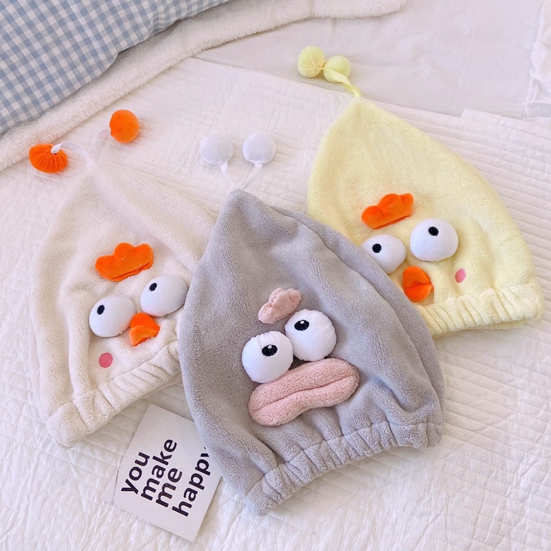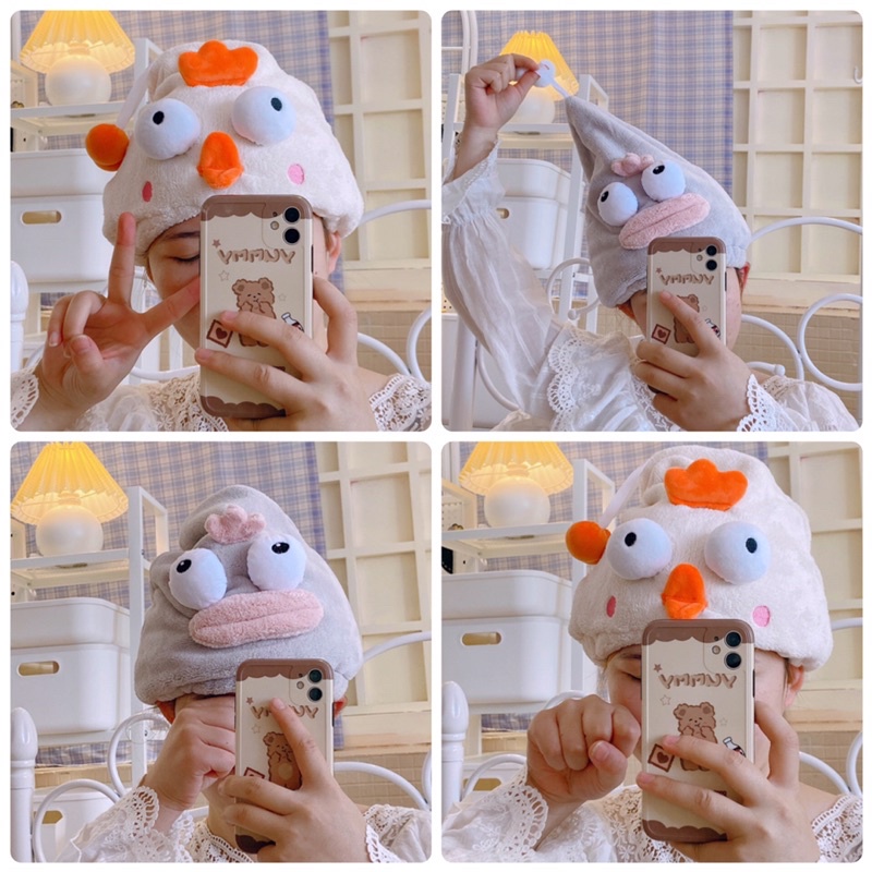 👉🏻 Khăn mũ trùm đầu khô tóc hình kute làm từ vải bông cao cấp, có tác dụng thấm hút tốt, giúp tóc mau khô, không bị hôi