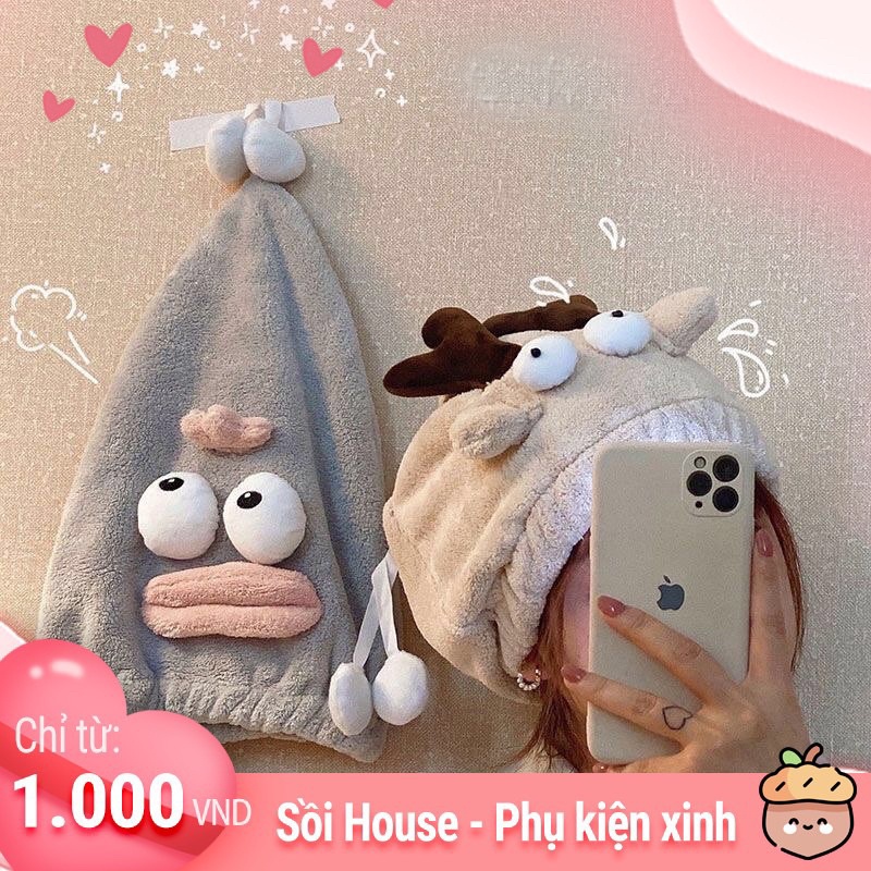 Nhà cửa & Đời sống > Đồ dùng phòng tắm > Khăn mặt, khăn tắm, áo choàng tắm > Khác || MŨ LAU TÓC/ KHĂN LAU TÓC LÀM KHÔ TÓC SIÊU THẤM HÚT HÌNH KUTE SỒI HOUSECòn hàng
