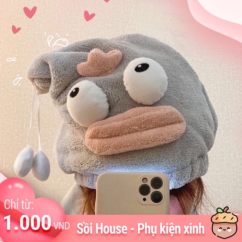 MŨ LAU TÓC/ KHĂN LAU TÓC LÀM KHÔ TÓC SIÊU THẤM HÚT HÌNH KUTE SỒI HOUSE
