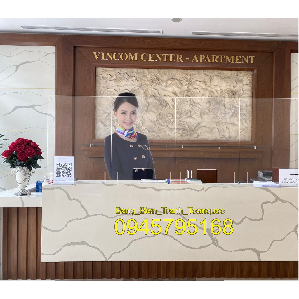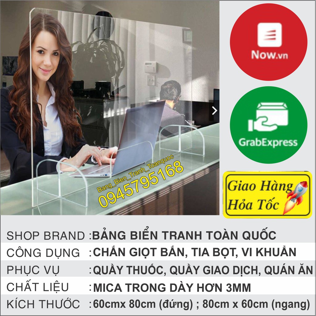 - Tấm chắn mica để bàn chống giọt bắn- Tác dụng: tấm chắn chống giọt bắn, chặn bắn tia bọt, vi khuẩn khi giao tiếp hoặc đứng gần nhau, góp phần chống dịch bệnh