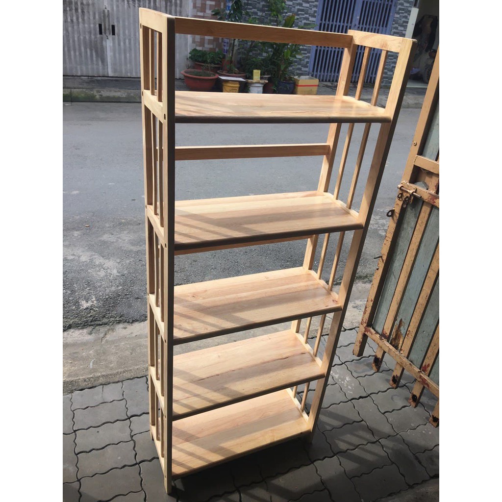 📌 Sản phẩm: Kệ Gỗ Cao Su 5 Tầng Ngang 65cm Sâu 28cm Cao 157cm Lọt Lòng 60cm📌 Giới thiệu: Đây là kệ được làm từ gỗ cây tự nhiên (cây cao su) được cắt thành từ mảnh gỗ tốt sau quá trình xử lý để rồi kết dính lại từ keo chuyên dụng để đảm bảo bền bĩ theo thời gian.