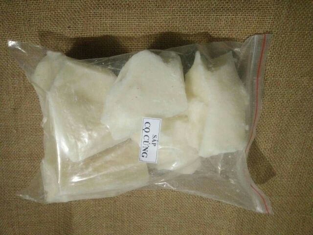 Sáp cọ, màu trắng đục, là sáp thực vật từ dầu cọ, sáp có mùi hắc đặc trưng của cọ, không độc hạisáp cứng, không bị mềm khi trời nắng nóng, đổ khuôn được