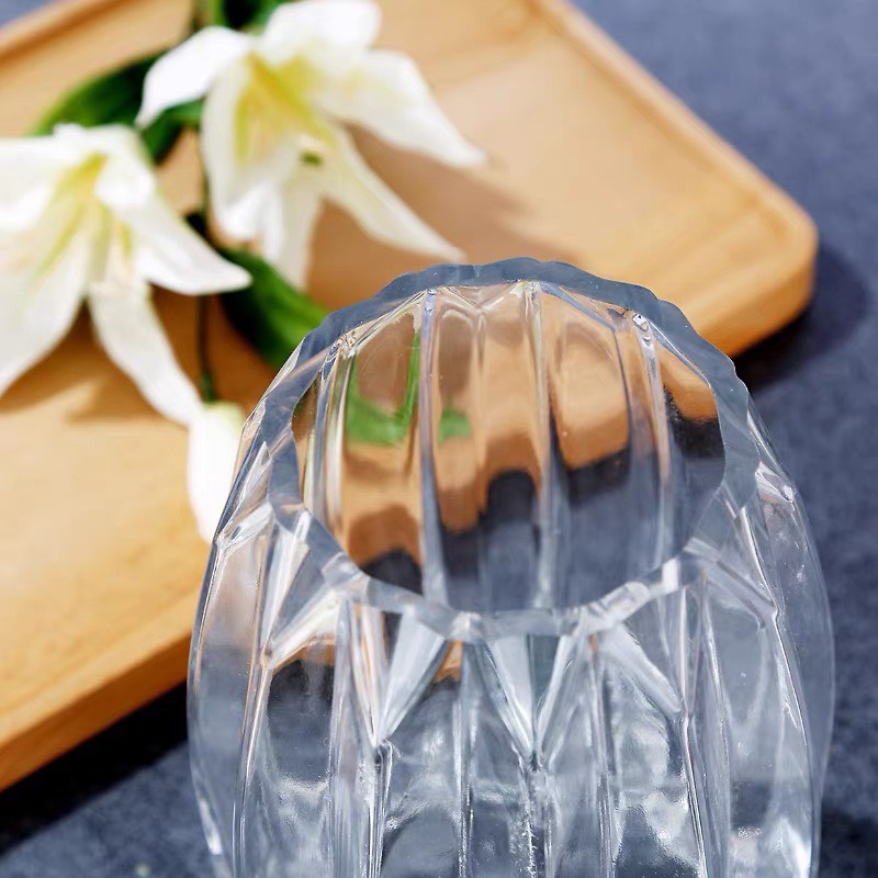 Lọ hoa thủy tinh vân dọc Heodecor LH060, bình hoa thủy tinh đẹp