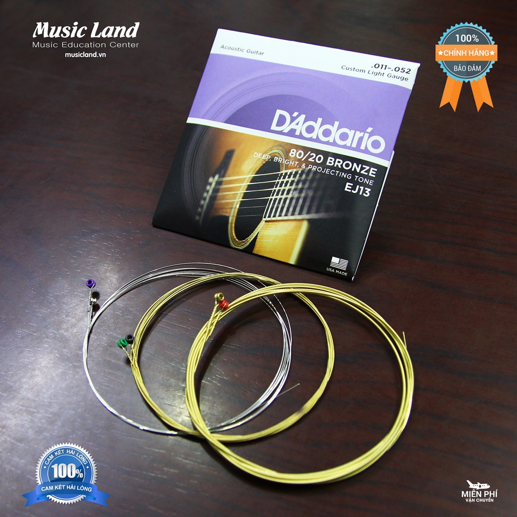 - Dây Đàn Guitar Acoustic D-Addario EJ13 pha đồng của D'Addario là mẫu dây đàn Guitar luôn có lõi dây làm bằng thép pha carbon, hình lục giác, chế tác bằng công nghệ hiện đại, độ bền cao, được sản xuất tại Mỹ (Made in USA)