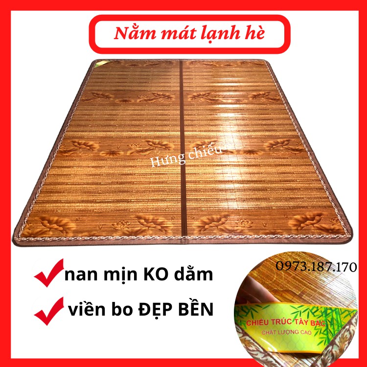 Chiếu trúc tăm tre vân gỗ tây bắc điều hoà đế lót lụa mát lạnh bảo hành 1 đổi 1