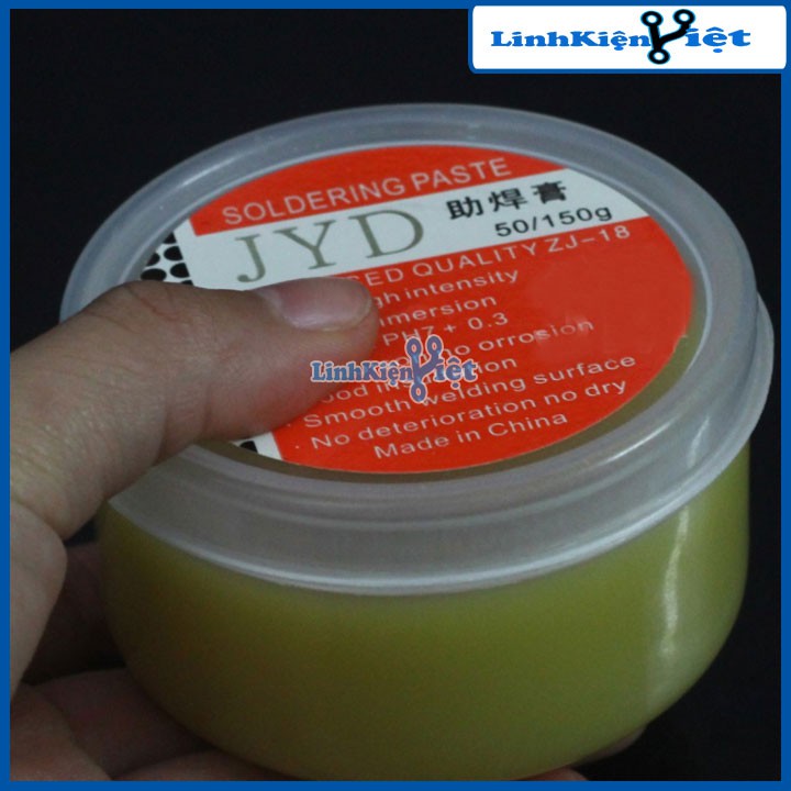 Mỡ hàn thiếc hỗ trợ hàn mạch Lọ To PASTE 100gMỡ hàn được dùng để vệ sinh mối hàn, làm bóng các mối hàn, sử dụng phổ biến khi hàn các loại ic dán, Mỡ hàn Paste là loại mỡ hàn có giá thành rẻ màu vàng và kết cấu đặc.Thông Số Kỹ Thuật