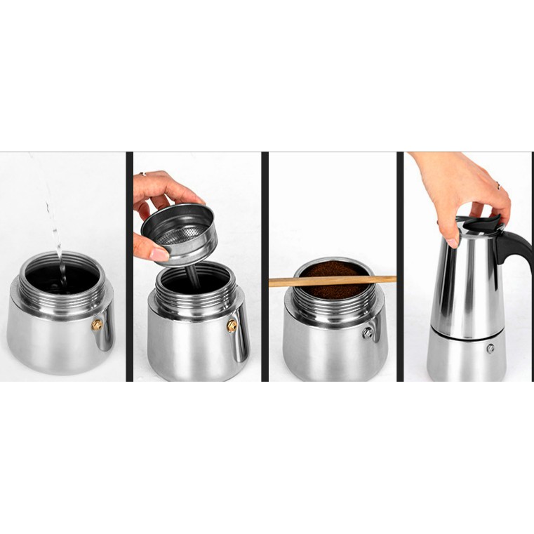 Bình pha caffe Moka Pot kiểu Ý / Ấm pha cafe Moka Pot kiểu Ý Nhà VinẤm pha cà phê Moka pot có thể dùng với tất cả các loại bếp đun như bếp từ cho bếp điện, bếp gas, bếp hồng ngoại...