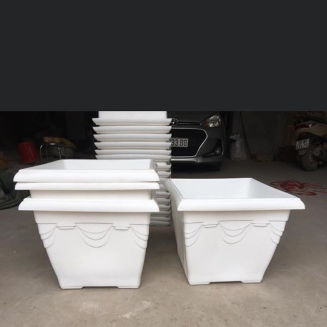 Chậu nơ vuông lớn, hoa văn đẹp chuyên dùng cho trồng cho các loại cây lớn như hoa giấy, cây cảnh, hoa củ, hoa lan bụiChậu nơ vuông lớn thiết kế với các hoa văn đẹp mắt trên 4 mặt và viền chậu. Chậu chuyên dùng cho trồng các cây cảnh lớn, hoa thân cao, hay hoa bụi lớn.